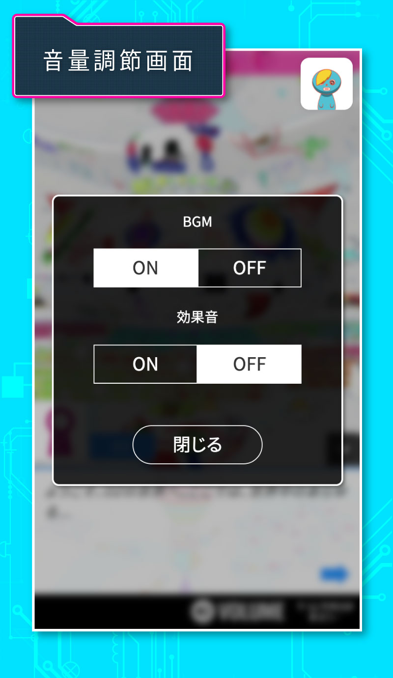 - BGMが流れますので、イヤフォンの使用を推奨しております。